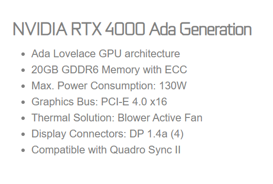 NVIDIA 8D6B7AA RTX 4000 Ada 20GB 4DP GFX EKRAN KARTI FOR WS