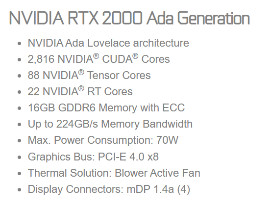 NVIDIA 8D6B8AA RTX 2000 Ada 16GB 4mDP GFX EKRAN KARTI FOR WS